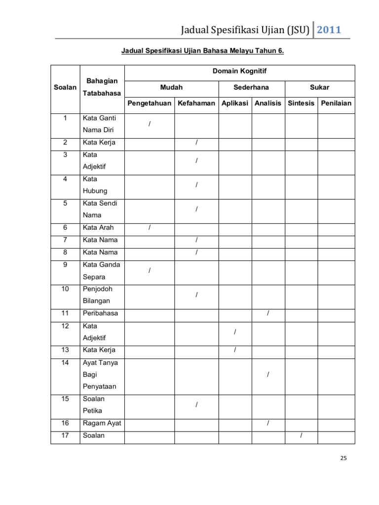 Jadual Spesifikasi Ujian Bahasa Melayu Tahun 6 Pdf